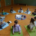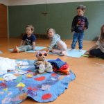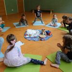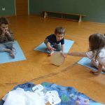 Also setzten wir uns hin und hörten die Geschichte vom Regentropfen Klaus der auf einer „Zuckerwattenwolke“ wohnte und machten mit ihm die Reise auf die Erde.