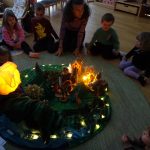 Die Tiger erzählten sich die Geschichte von Lumina, die eine sehr ähnliche Geschichte ist und am Ende erstrahlt alles gemeinsam und spendet Wärme und Geborgenheit.