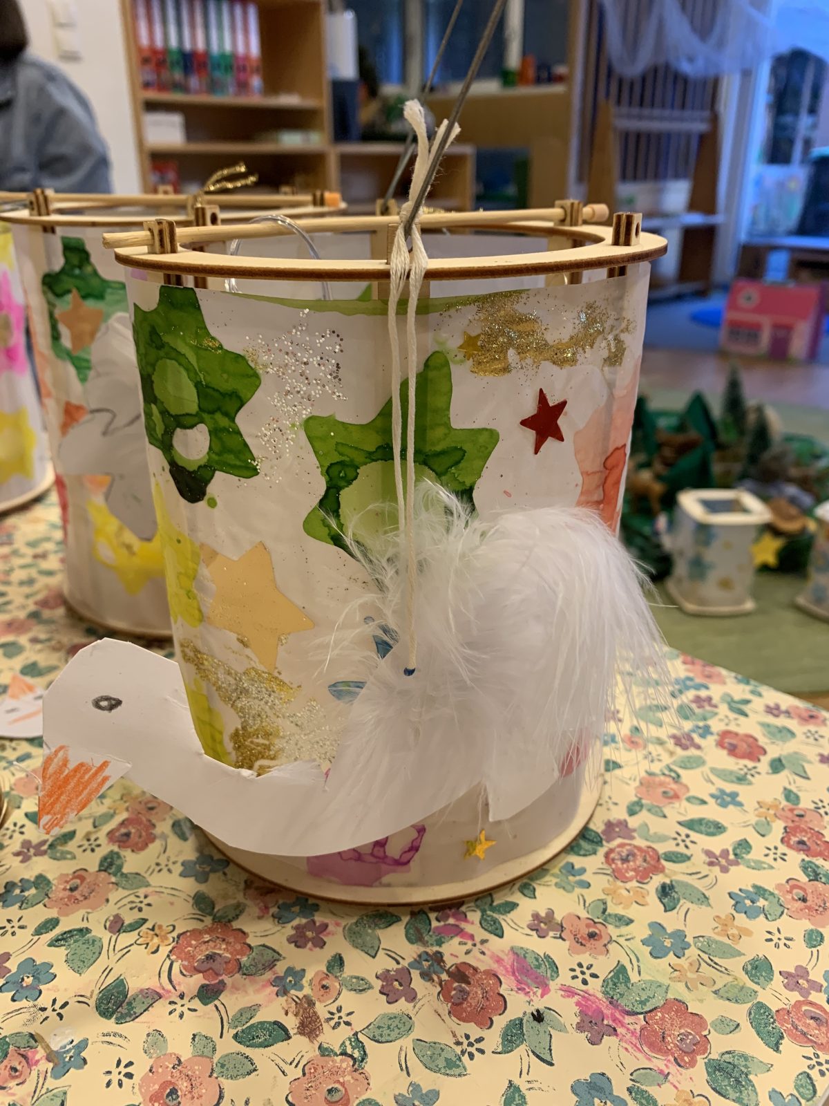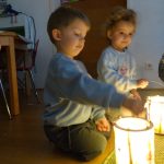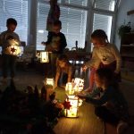 Es leuchtet und glitzert schon bei uns und die Kinder haben eifrig ihre Laternen wieder erneuert.